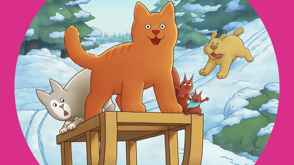 Op een winterse dag ontdekken Dikkie Dik en Poes Muis iets nieuws: sneeuw! Maar er is ook een nieuwe buurtgenoot; een grote, luidruchtige hond die Blaf heet. Brr, daar houden de poezen niet van!